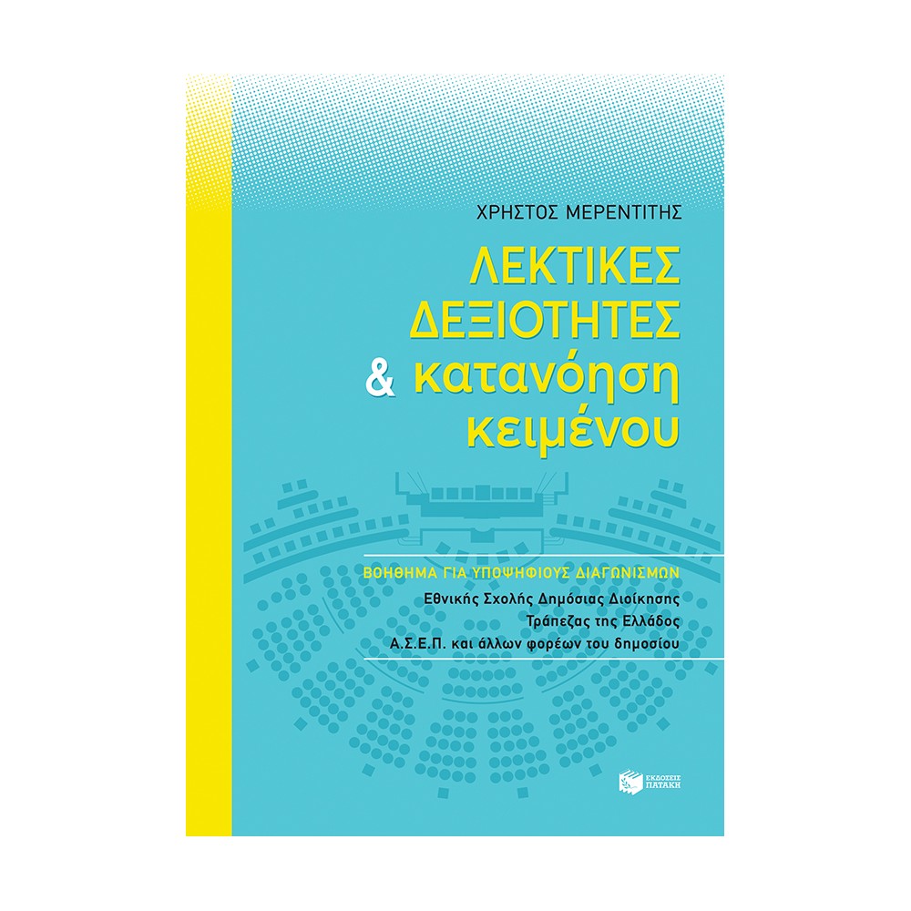 Συνεπώς, ένα βιβλίο που θα ασκεί τους/τις υποψηφίους/ες στο αντικείµενο των Λεκτικών δεξιοτήτων και της κατανόησης κειµένου θα αποτελεί πάντα ένα σηµαντικό βοήθηµα για την επιτυχία τους.