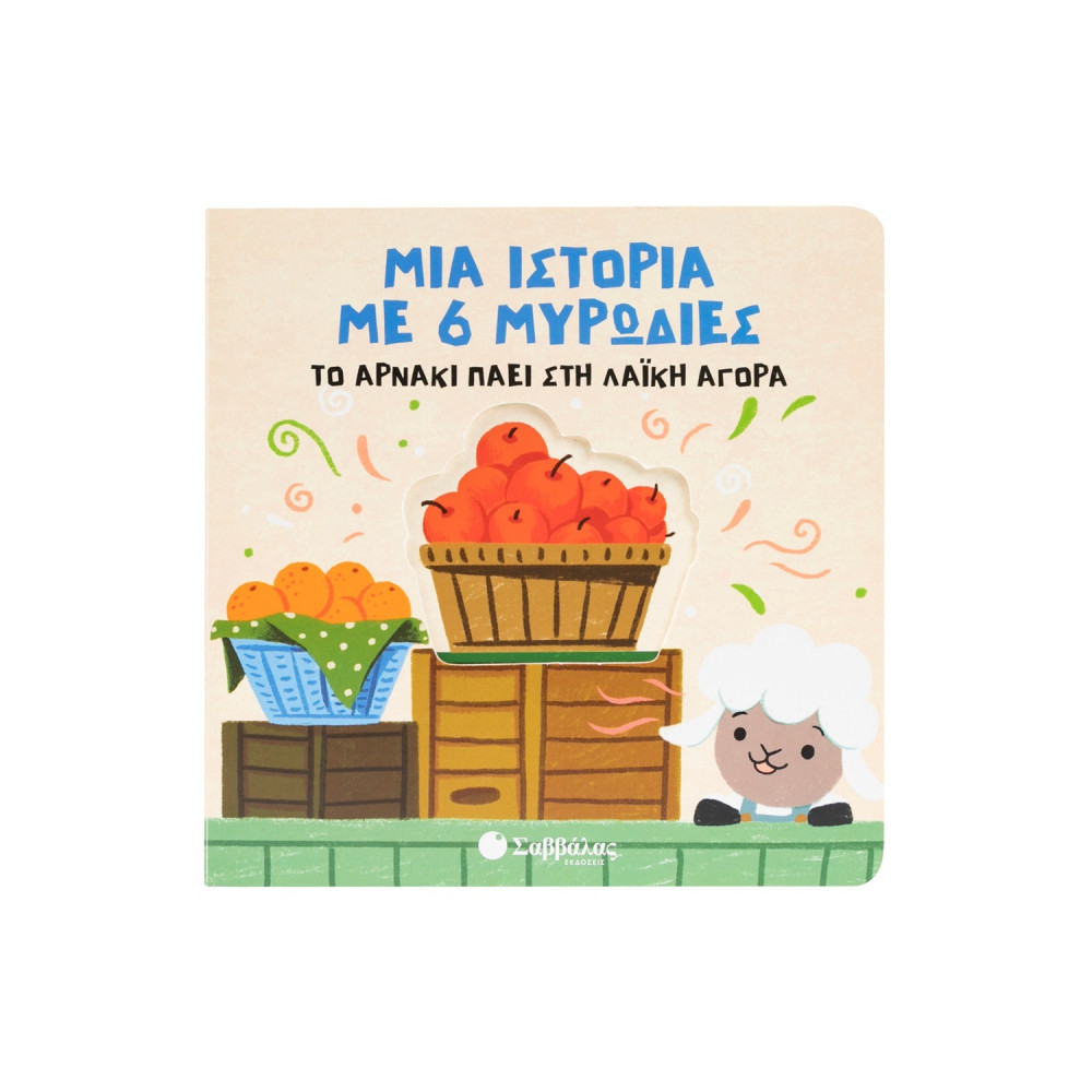 Ο ήλιος λάμπει και το αρνάκι πάει στην αγορά να κάνει τα ψώνια του. Τι θα αγοράσει όμως; Υπάρχουν τόσα πολλά πράγματα και όλα μοσχομυρίζουν Άνοιξε το κάθε παραθυράκι και τρίψε την εικόνα για να ανακαλύψεις τις υπέροχες μυρωδιές που αρέσουν τόσο στο αρνάκι