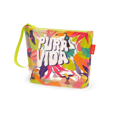 Κλείνει με φερμουάρ για να κρατάει τα προσωπικά σου αντικείμενα προφυλαγμένα από την άμμο, ενώ είναι διάφανο για να μπορείς να τσεκάρεις σε δευτερόλεπτα τα περιεχόμενα του. Εναλλακτικά, το αδιάβροχο υλικό του σου επιτρέπει να αποθηκεύεις τα βρεγμένα μαγιό χωρίς να βρέχεις την τσάντα σου.