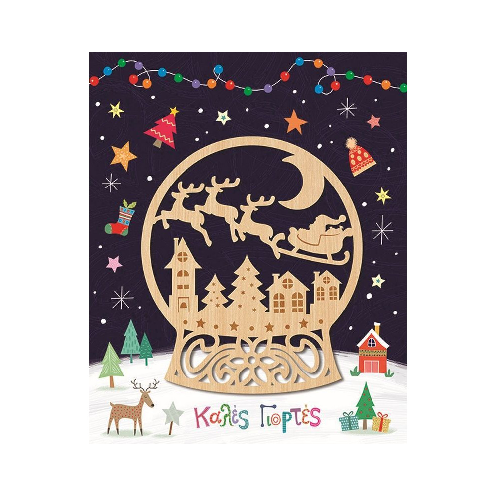 Χριστουγεννιάτικη κάρτα μικρή Fun Creations Χιονόμπαλα με έλκηθρο