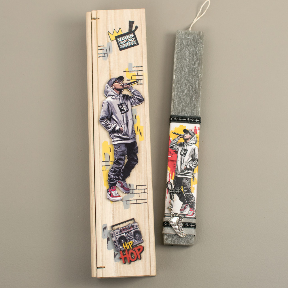 Λαμπάδα πλακέ σε ξύλινη κασετίνα ράπερ 30χ6,5cm 26156 Δημιουργίες