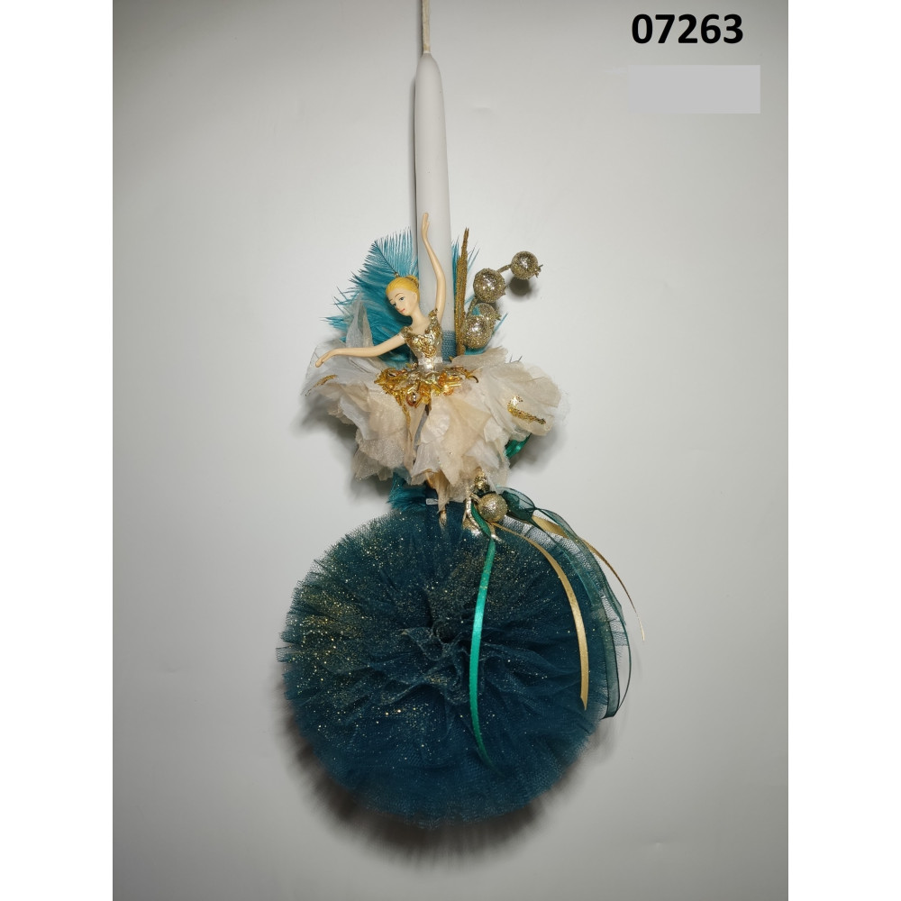 Λαμπάδα πον πον Φ16 πετρόλ μπαλαρίνα με χρυσά
