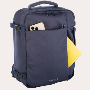 Μικρό, συμπαγές ταξιδιωτικό σακίδιο σχεδιασμένο για να καλύπτει τις απαιτήσεις μεγέθους όλων των αεροπορικών εταιρειών. Κατασκευασμένο από υλικό που παράγεται από ανακυκλωμένο πλαστικό, το σακίδιο πλάτης Tugo M έχει δύο ευρύχωρες εξωτερικές τσέπες για αξεσουάρ, που διαθέτουν εσωτερική θήκη AirTag και ξεχωριστό, επενδυμένο πίσω διαμέρισμα για φορητό υπολογιστή 15,6 ή MacBook Pro 16. Η εσωτερική θήκη είναι μεγάλη και ευρύχωρη, ιδανική για ρούχα και αξεσουάρ και μπορεί να ασφαλιστεί με οποιοδήποτε λουκέτο σχεδιασμένο να λειτουργεί με φερμουάρ. Απολαύστε εξαιρετική φορητότητα με δύο χερούλια, το ένα στο πάνω μέρος και το άλλο στο πλάι, και ένα λουράκι για προσάρτηση σε τρόλεϊ. Σακίδιο καμπίνας για όλα τα πρότυπα αεροπορικών εταιρειών