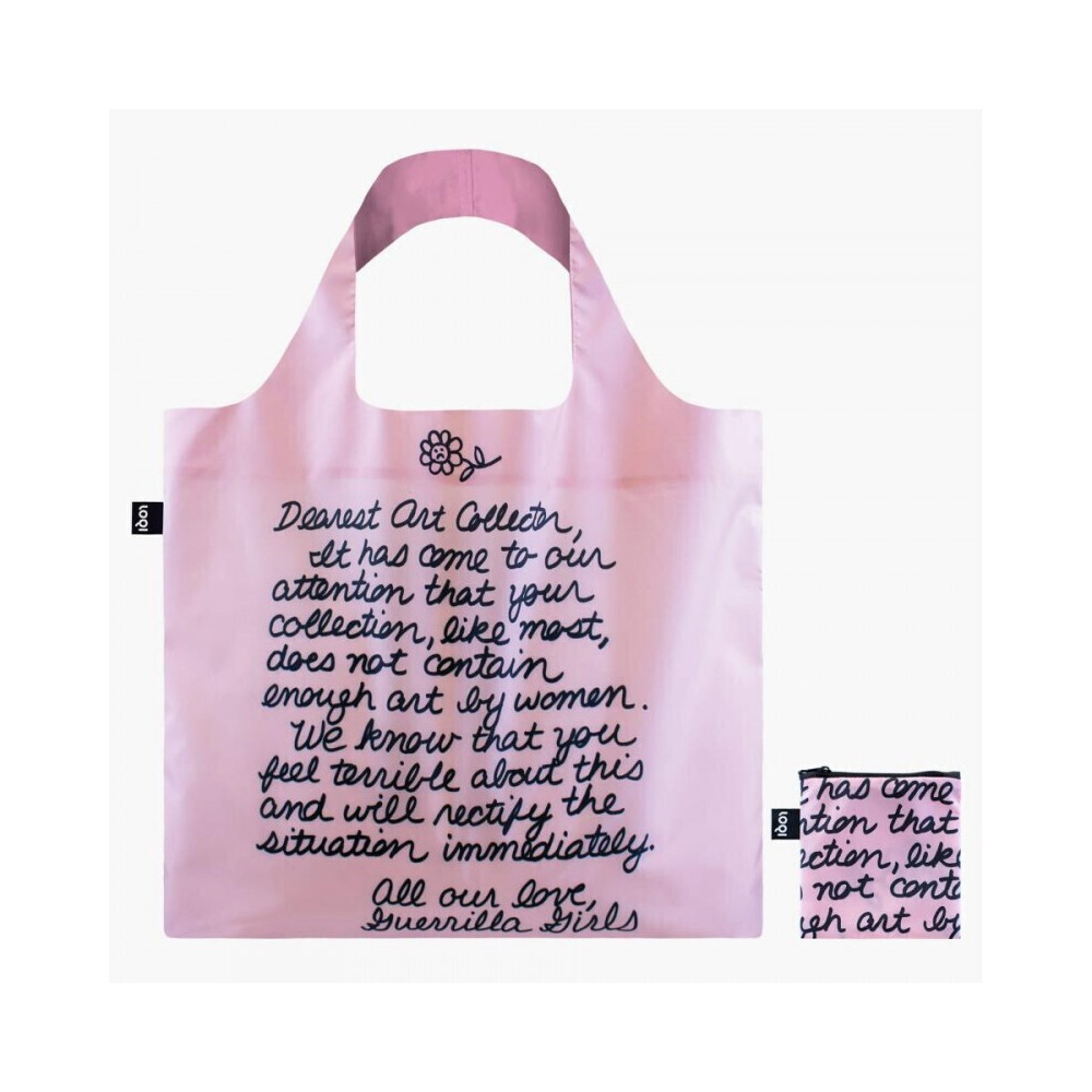 Μεταδίδοντας ένα σημαντικό μήνυμα για οποιονδήποτε συλλέκτη τέχνης, αυτή η πτυσσόμενη τσάντα αγορών από ανακυκλωμένο πολυεστέρα διαθέτει μια εκτύπωση του Dearest Art Collector, 1986, από την Guerrilla Girls.