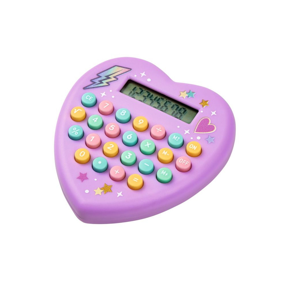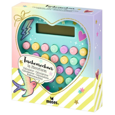 Μικρός καθημερινός βοηθός για το σπίτι και εν κινήσει Η χαριτωμένη αριθμομηχανή σε σχήμα καρδιάς διευκολύνει τις μικρές αριθμητικές εργασίες για παιδιά και νέους, οποτεδήποτε και οπουδήποτε. Το όμορφο σχέδιο σε παστέλ μωβ ή τιρκουάζ, καθώς και τα δροσερά μοτίβα αστεριών, αστραπών και καρδιάς κάνουν τη μικρή αριθμομηχανή πραγματικά εντυπωσιακή. Τα πολύχρωμα, διαφορετικού χρώματος πλήκτρα αριθμών και χαρακτήρων είναι επίσης ένα ιδιαίτερο χαρακτηριστικό. Η πρακτική μικρή οθόνη δείχνει πάντα ξεκάθαρα ποιοι αριθμοί και οι υπολογισμοί εισάγονται αυτήν τη στιγμή, ώστε να μην χάνετε ποτέ το ίχνος σας. Η αριθμομηχανή χειρός λειτουργεί με ένα περιλαμβανόμενο στοιχείο κουμπιού που μπορεί να αντικατασταθεί εάν είναι απαραίτητο. Αυτή η αριθμομηχανή καρδιάς δεν πρέπει να λείπει από καμία σχολική τσάντα και είναι απαραίτητη για κάθε γραφείο