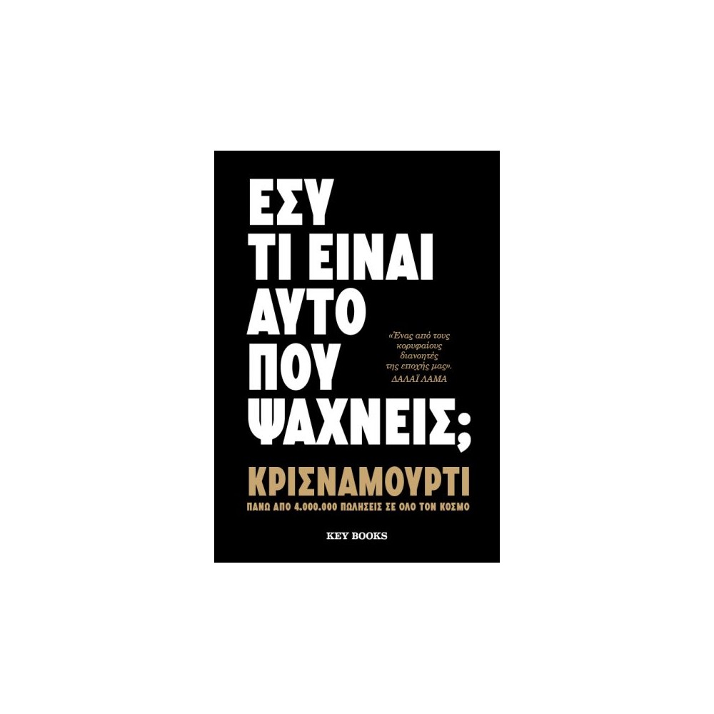 Στο Εσύ τι είναι αυτό που ψάχνεις; ο Κρισναμούρτι δίνει τις απαντήσεις που αναζητάμε όλοι για την αγάπη, τις σχέσεις και τον σκοπό της ζωής, με τρόπο διαχρονικό και πανανθρώπινο.