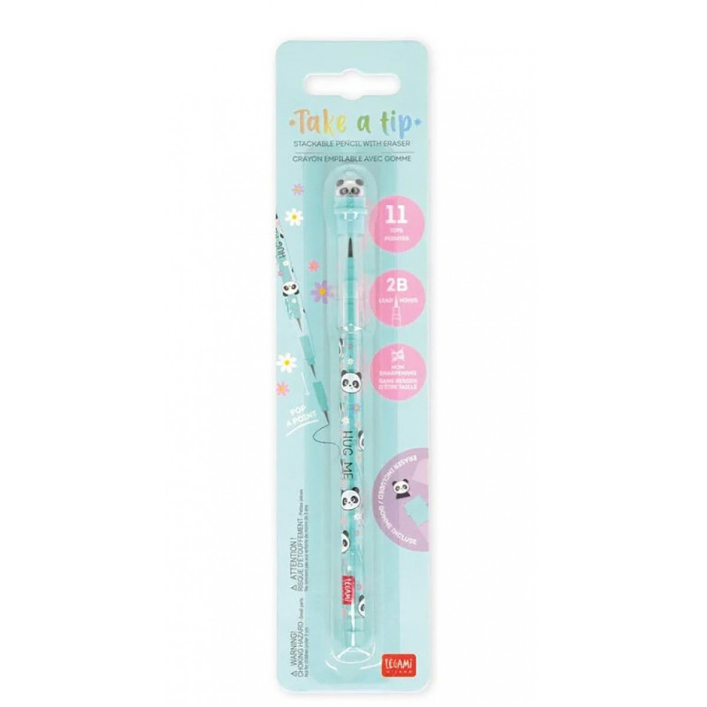 Κάνε κάθε σχολική μέρα πιο διασκεδαστική με το Legami Στοιβαζόμενο Μολύβι με Γόμα – Take a Tip – Panda. Με γλυκό σχέδιο πάντα και 11 ανταλλακτικές μύτες 2B, είναι πάντα έτοιμο για χρήση χωρίς να χρειάζεται ξύστρα. Πολύχρωμο, πρακτικό και ιδανικό για παιδιά που θέλουν να γράφουν, να σχεδιάζουν και να διορθώνουν εύκολα, παντού και πάντα.