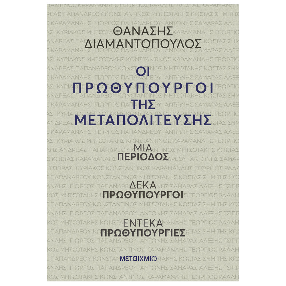 Εικονοκλάστης, ανατρεπτικός, διεισδυτικός, χρήσιμα παρεμβατικός, ανένδοτα υποκειμενικός, αλλά ταυτόχρονα και βαθιά αντικειμενικός, με γλώσσα γλαφυρότατη και γραφή καταιγιστική, ο καθηγητής Θανάσης Διαμαντόπουλος ρίχνει μια ανατομική ματιά στη Μεταπολίτευση και τους πρωθυπουργούς της που δεν θα περάσει απαρατήρητη. Δεν αποκλείεται δε να γίνει και σημείο αναφοράς στο μέλλον…