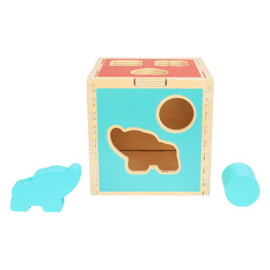 Ο Ξύλινος Κύβος βοηθάει το παιδί να μάθει τα χρώματα, τα σχήματα και τα ζωάκια. Αναπτύσσει την κριτική και λογική ικανότητά του, καθώς κάθε σφήνωμα αντιστοιχεί μόνο σε ένα άνοιγμα. Επίσης, το παιδί αποκτά καλύτερο έλεγχο των κινήσεών του και αναπτύσσει την παρατηρητικότητα του. Τα έντονα χρώματα στον κύβο, τα σχήματα και τα ζωάκια, έλκουν την προσοχή του παιδιού και διατηρούν το ενδιαφέρον του για ώρα.