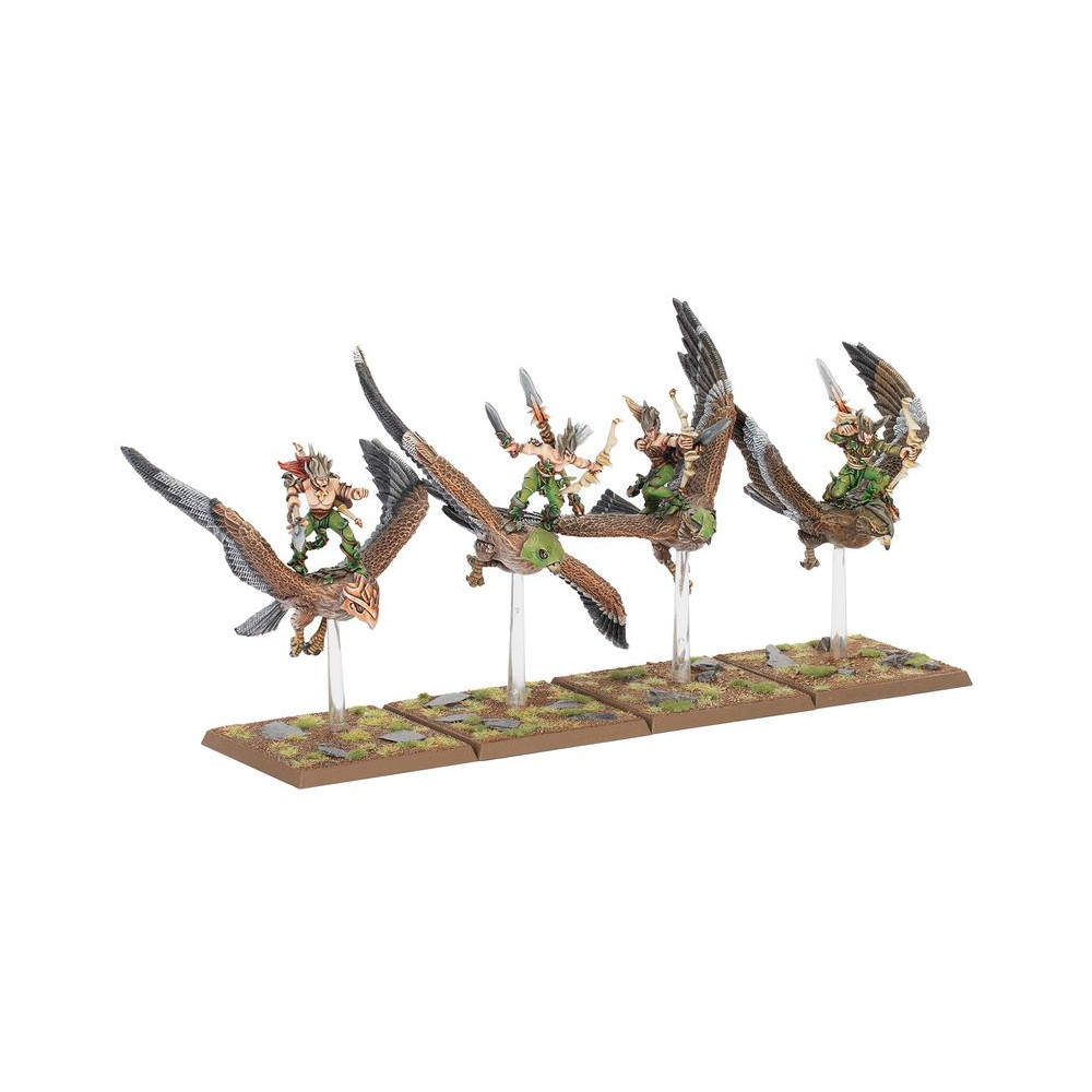 This metal kit allows you to assemble four Hawk Riders for your armies in Warhammer The Old World. Perched atop their mighty War Hawks, these swift shooters can deal significant damage from range with their bows, and switch to cavalry lances in close combat. Combined with the coordinated attacks of their mounts, they form a highly mobile and versatile unit, perfect for harassing enemies and supporting tactical maneuvers.