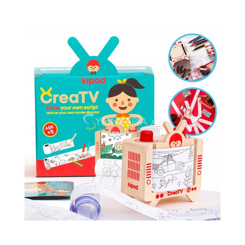 Για τα παιδιά που τους αρέσει η τέχνη και για τα παιδιά που αγαπούν να βλέπουν τηλεόραση, αυτό το παιχνίδι της Kipod είναι ιδανικό. Τα παιδιά ζωγραφίζουν εικόνες, φτιάχνουν το δικό τους σενάριο και δημιουργούν τη δική τους ταινία. Το πακέτο περιλαμβάνει μία ξύλινη τηλεόραση, ένα βιβλιαράκι, 5 ρολά με έτοιμες ιστορίες και ένα κενό μεγάλο ρολό για να γράψει το παιδί τη δική του ιστορία. Απευθύνεται σε παιδιά από 5 ετών.