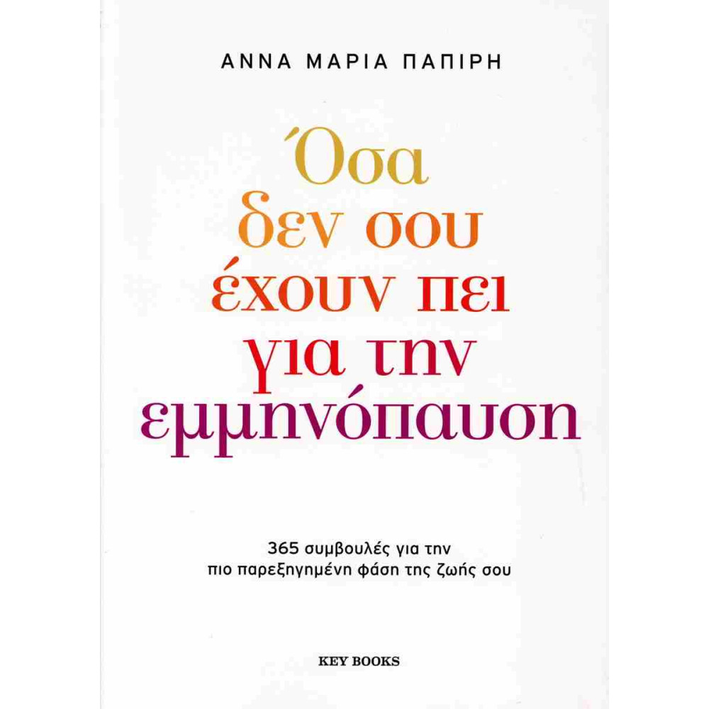 Η εμμηνόπαυση δεν είναι το τέλος είναι η αρχή. Μια περίοδος αλλαγής, δύναμης και βαθύτερης κατανόησης του εαυτού σου. Σε αυτό το βιβλίο θα βρεις 365 συμβουλές, εργαλεία και μικρές καθημερινές υπενθυμίσεις που θα σε βοηθήσουν να αγκαλιάσεις το σώμα σου και τις αλλαγές του με τρυφερότητα, να καλλιεργήσεις αυτοπεποίθηση και ισορροπία, να ζήσεις με περισσότερη χαρά, ενέργεια και ποιότητα ζωής. Η Άννα Μαρία Παπίρη με τη συνεργασία 26 ειδικών σού δείχνει ότι αυτή η φάση μπορεί να γίνει το πιο δυνατό, φωτεινό και δημιουργικό κομμάτι της ζωής σου. Γιατί κάθε μέρα είναι μια ευκαιρία να ξανασυστήσεις τον εαυτό σου πιο ελεύθερη, πιο αυθεντική, πιο εσύ. Από την παρουσίαση στο οπισθόφυλλο του βιβλίου