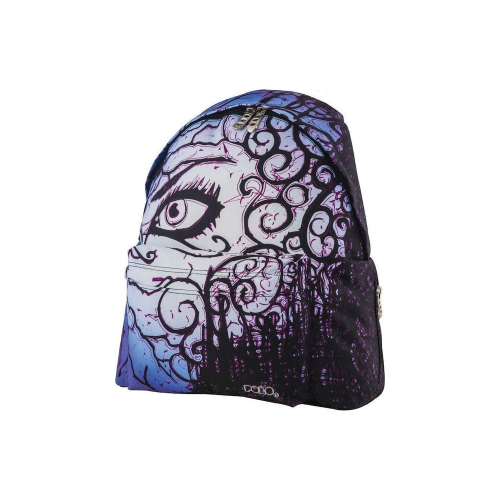 Σχολική τσάντα η οποία μπορεί να φορεθεί στην πλάτη, κατάλληλη για παιδιά γυμνασίου λυκείου της εταιρίας Polo με ανατομική πλάτη σε μωβ χρώμα χωρητικότητας 20 λίτρων