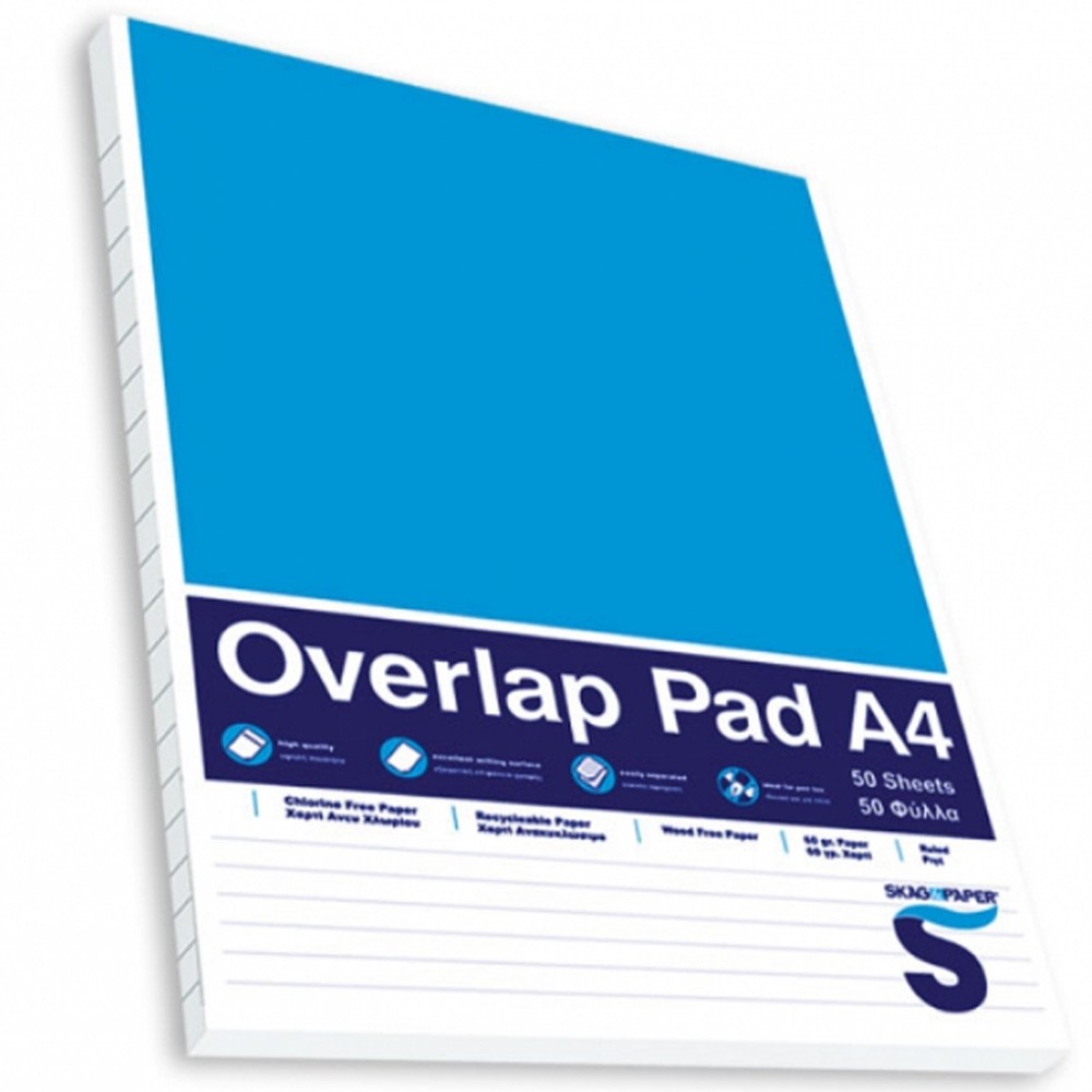 Μπλοκ γραφής OVERLAP ΡΙΓΕ SKAG. Μπλόκ σημειώσεων Α4 το κλασσικό μπλόκ με ρίγες, ειδικό για σημειώσεις με 50 φύλλα 60 γραμμαρίων, δεμένο με άνοιγμα από πάνω. Ανακυκλώσιμο άνευ χλωρίου.