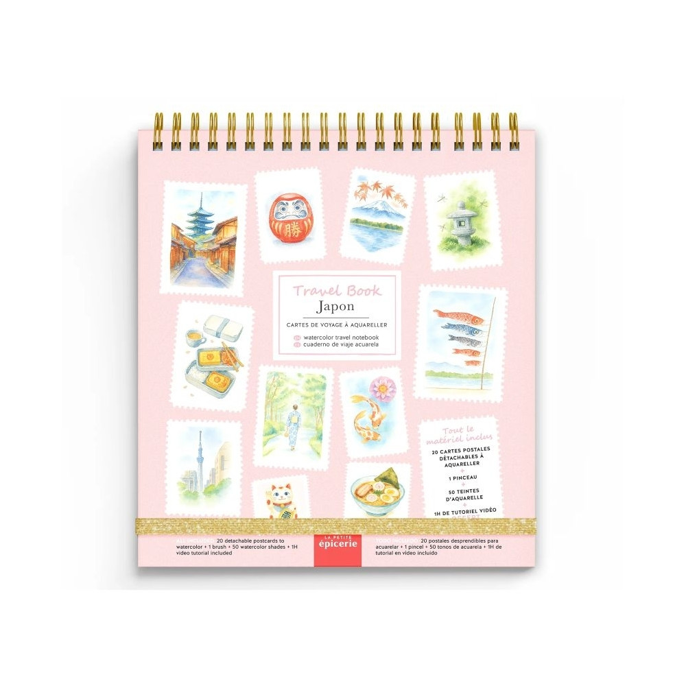Περιγραφή Ένα πρακτικό σημειωματάριο ταξιδιού για ζωγραφική με ακουαρέλα, το οποίο περιλαμβάνει 20 αποσπώμενες καρτ ποστάλ εμπνευσμένες από την Ιαπωνία.