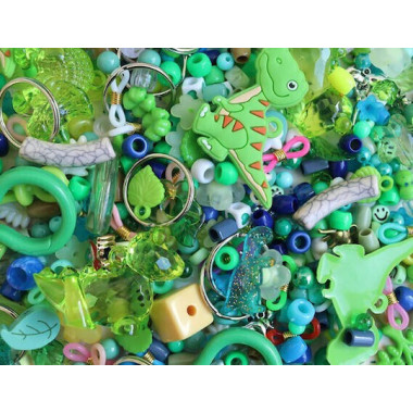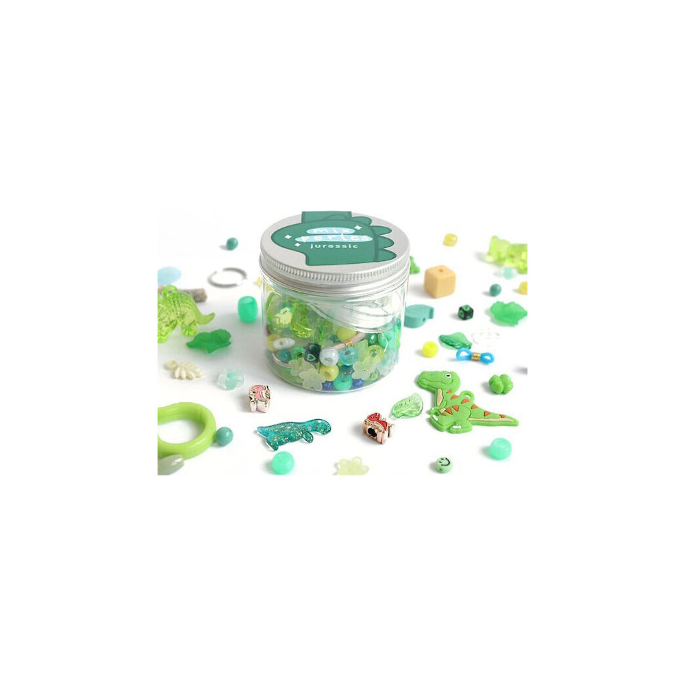 Πρόκειται για ένα δημιουργικό σετ kit για την κατασκευή χειροποίητων κοσμημάτων με θέμα τους δεινόσαυρους και τη φύση.
