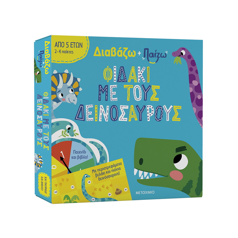 • Ταμπλό παζλ 4 κομματιών • 8 πιόνια δεινόσαυροι • περιστρεφόμενο βελάκι • κύπελλο για τον νικητή • βιβλίο 24 σελίδων με ερωτήσεις και απαντήσεις για τους δεινόσαυρους