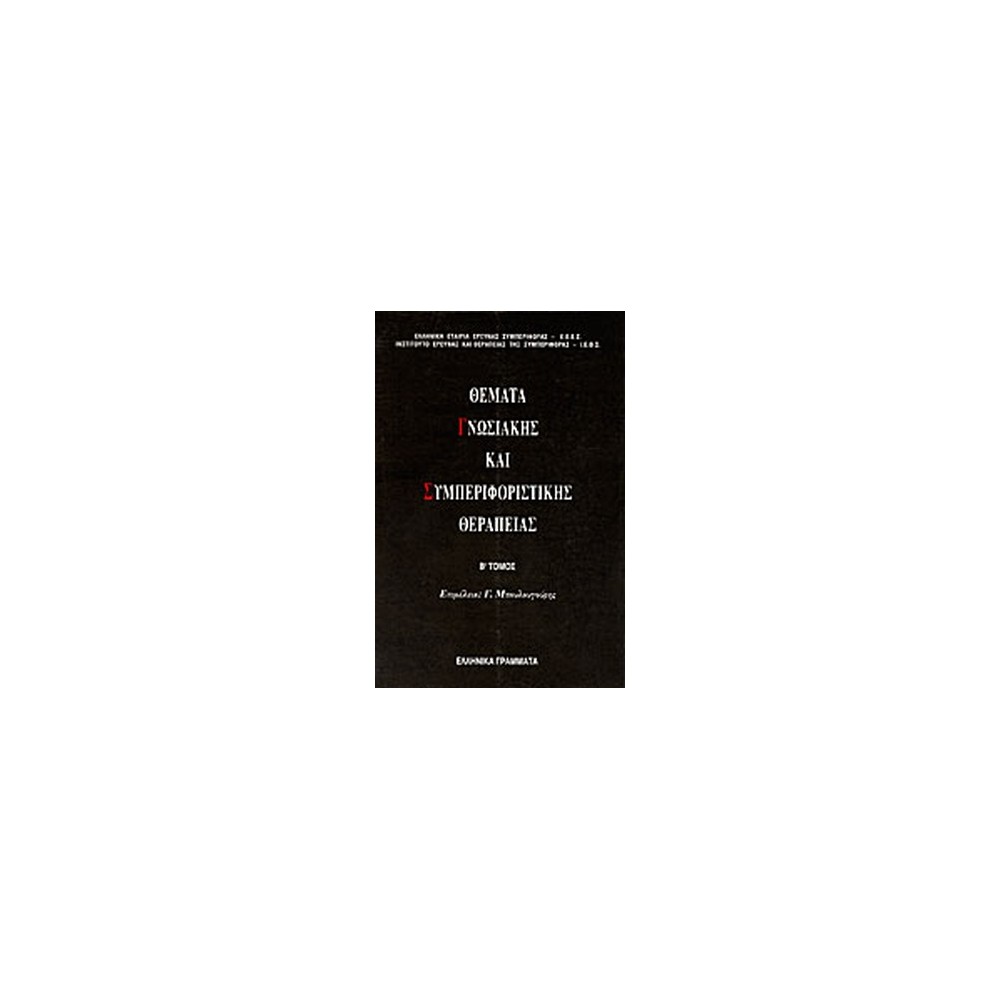 Ο δεύτερος τόμος των Θεμάτων Γνωσιακής και Συμπεριφοριστικής Θεραπείας περιλαμβάνει ορισμένες εργασίες που βασίστηκαν στις ομιλίες, τα σεμινάρια, τα θέματα του Journal Club και στα Workshops που πραγματοποιήθηκαν το έτος 1993 1994 στο Ινστιτούτο Έρευνας και Θεραπείας της Συμπεριφοράς και γίνονται σε συνεργασία με την Ελληνική Εταιρία Έρευνας της Συμπεριφοράς. ... Ο σκοπός της έκδοσης αυτής είναι βασικά διδακτικός. Στόχος είναι να δοθεί ένα βοήθημα στους σπουδαστές που παρακολουθούν το τριετές πρόγραμμα εκπαίδευσης στη Γνωσιακή και Συμπεριφοριστική Θεραπεία, που από το 1992 οργανώνεται από το Ινστιτούτο. Το βιβλίο απευθύνεται, όμως, και σε όλους εκείνους ψυχίατρους, ψυχολόγους, νοσηλευτές, κοινωνικούς λειτουργούς που δουλεύουν και παρέχουν υπηρεσίες ψυχικής υγείας, καθώς και στους εκπαιδευτικούς που οι μαθητές τους αντιμετωπίζουν μαθησιακές δυσκολίες και προβλήματα συμπεριφοράς.