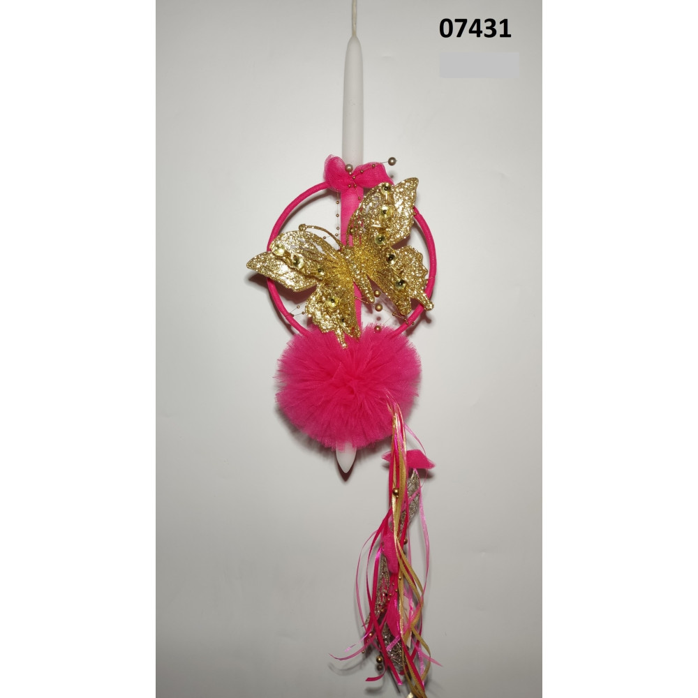 Λαμπάδα Φ 16 πεταλούδα χρυσή σε παγιέτα Φούξια 07431