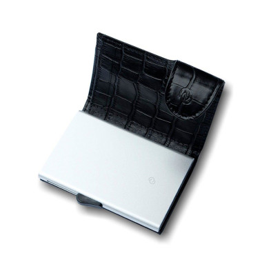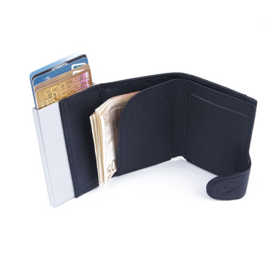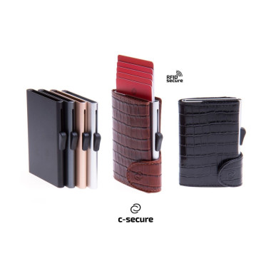 Αυτό το μοναδικό πορτοφόλι C Secure κατασκευασμένο από γνήσιο δέρμα και θήκη καρτών αλουμινίου.