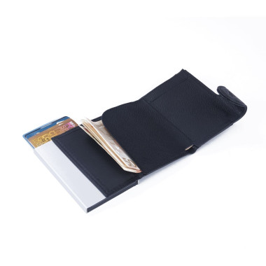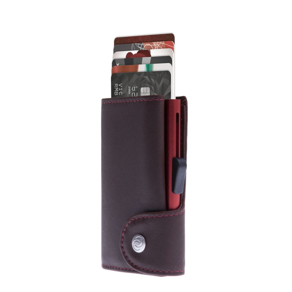 Υποδοχή έως και 6 καρτών στη θήκη της κάρτας και με ένα κλικ όλες οι κάρτες γλιστρούν αργά προς τα έξω συν το πορτοφόλι από γνήσιο δέρμα με 2 υποδοχές καρτών και τσέπη χαρτονομισμάτων. Αυτό σημαίνει ότι δεν υπάρχουν άλλες λυγισμένες πιστωτικές κάρτες Ο κάτοχος της κάρτας προστατεύει τα τσιπ RFID των πιστωτικών καρτών σας από την ανάγνωση από ξένους.