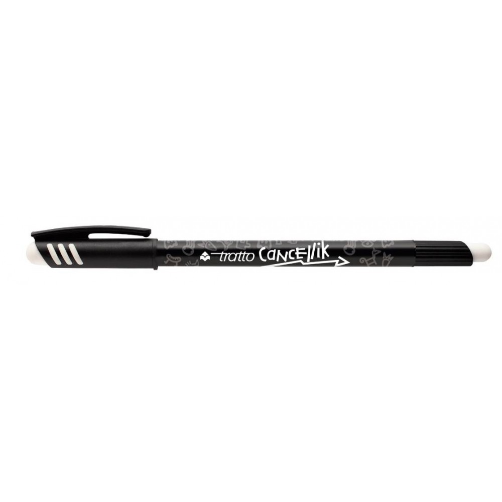 Τα λάθη σας μπορούν εύκολα να σβηστούν και να διορθωθούν με το Tratto Cancellik, ωστόσο το μελάνι γίνεται μόνιμο μετά από περίπου 24 ώρες. Το στυλό διαθέτει δύο γόμες μία στο τέλος του στυλό και μία στο καπάκι. Το ίδιο το καπάκι είναι αδιάβροχο για να εξασφαλίσει πλήρη ασφάλεια κατά τη χρήση. Επιπλέον, υπάρχει ένα κενό όπου μπορείτε να προσθέσετε το όνομά σας για να το αναγνωρίζετε εύκολα. Διατίθεται σε 10 φωτεινά χρώματα σκούρο μπλε, κόκκινο, μαύρο, πράσινο, γαλάζιο, φούξια, πορτοκαλί, μωβ, κίτρινο και ανοιχτό πράσινο.