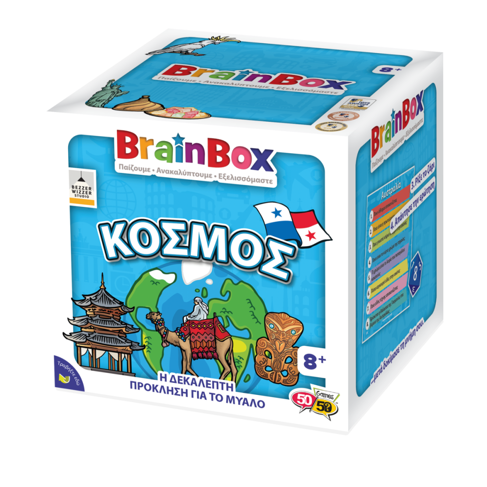 Εξερεύνησε όλες τις χώρες του κόσμου από το σπίτι σου Διάλεξε μια κάρτα μέσα από το BrainBox. Αναποδογύρισε την κλεψύδρα και προσπάθησε να μάθεις απ'έξω την κάρτα σε 10 δευτερόλεπτα Τώρα ρίξε το ζάρι και απάντησε στην αντίστοιχη ερώτηση. Αν απαντήσεις σωστά κρατάς την κάρτα, αν απαντήσεις λάθος βάζεις την κάρτα πάλι μέσα στο BrainBox.