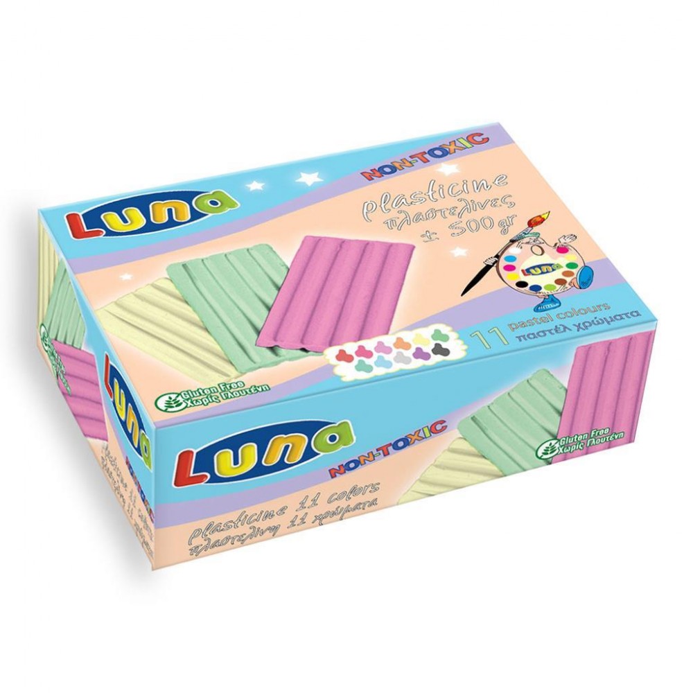 Πλαστελίνη Luna 500γρ. σε 11 παστέλ χρώματα, ιδανική για υπέροχες κατασκευές πλαστελίνης που θα ενθουσιάσουν μικρούς και μεγάλους